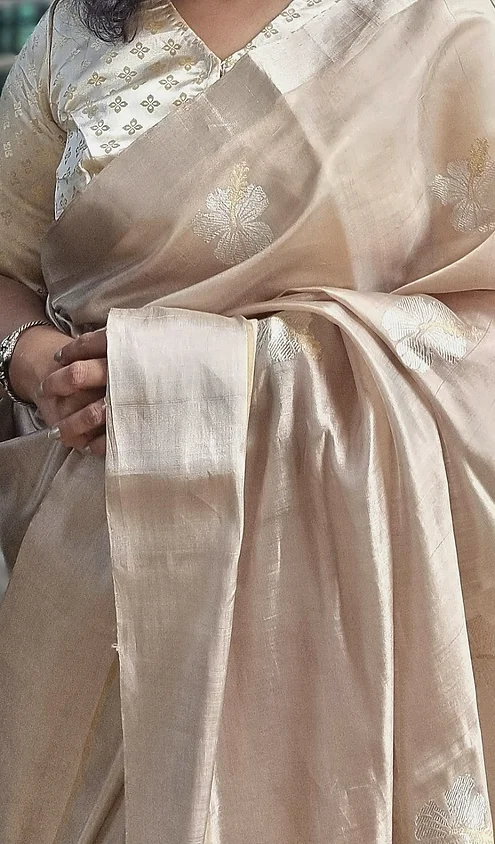 Color: Elegant beige with subtle golden zari border & motifs