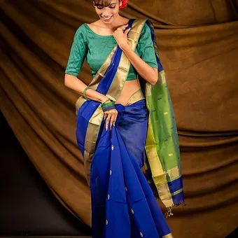- Color: Blue & Green with Golden Zari Border