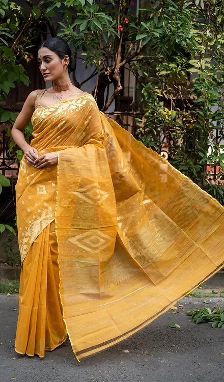 Handloom Golden Yellow Dhakai Jamdani Saree