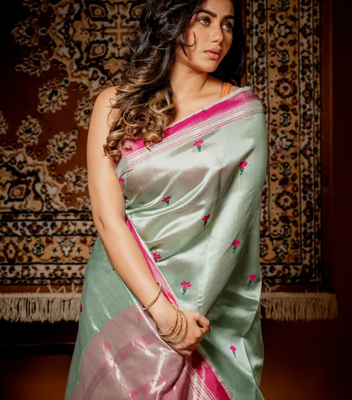 Work: Handwoven floral buti with zari highlights
