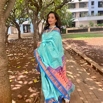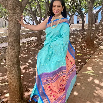 Authentic Paithani weave with rare Bandhani artistry.
