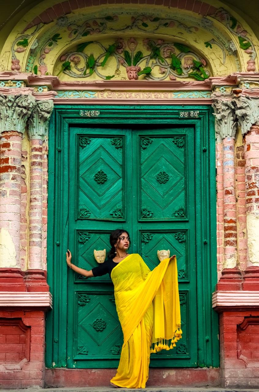 Sunahari Handwoven Mul Cotton Saree with Two Shades